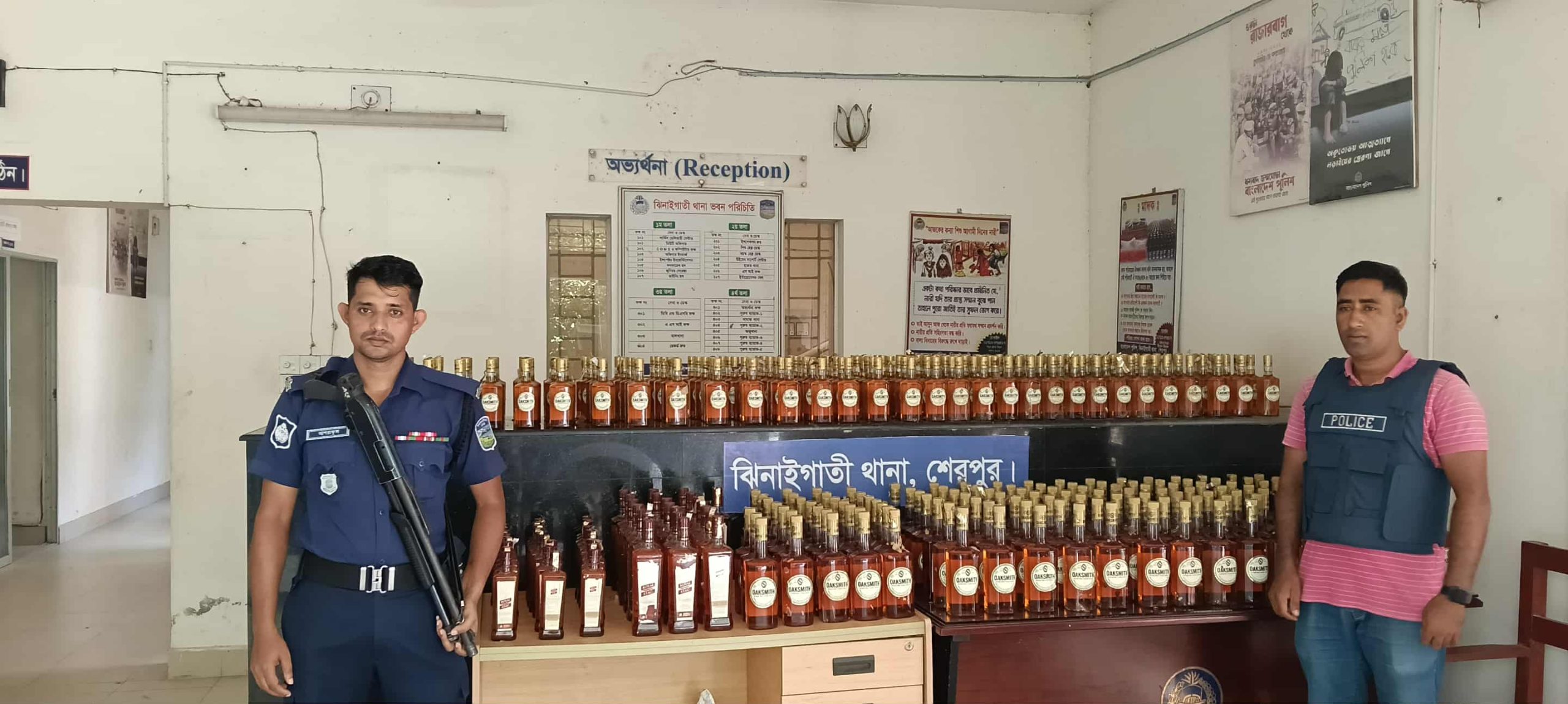 ঝিনাইগাতী সীমান্তে বিপুল পরিমাণে বিদেশী মদ জব্দ
