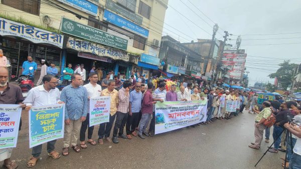 নিরাপদ সড়ক চাই সুনামগঞ্জের মানববন্ধন